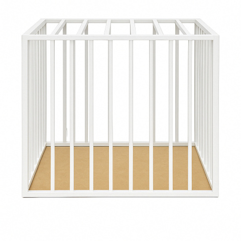 Konstrukcja z profili stalowych daje dużo większą sztywność niż klasyczne klatki z drutu. Płyta OSB na spodzie tworzy stabilną bazę – wystarczy położyć na niej legowisko, materac lub grubszą matę, aby zapewnić psu wysoki komfort.