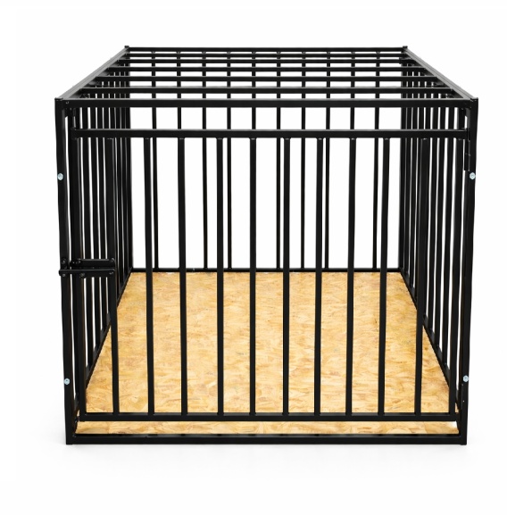 Konstrukcja z profili stalowych daje dużo większą sztywność niż klasyczne klatki z drutu. Płyta OSB na spodzie tworzy stabilną bazę – wystarczy położyć na niej legowisko, materac lub grubszą matę, aby zapewnić psu wysoki komfort.