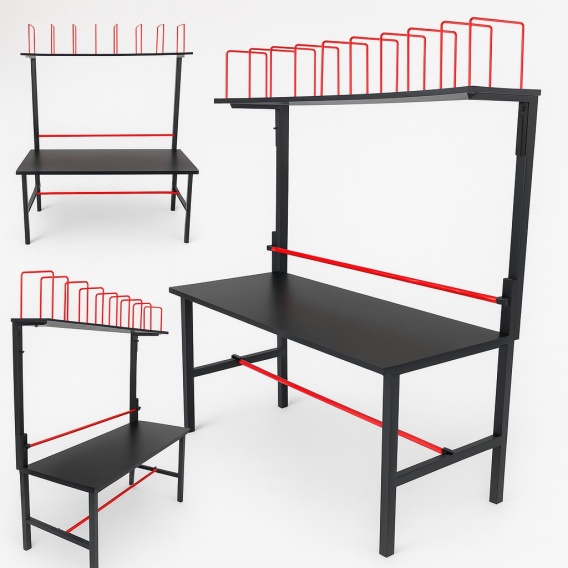 Stalowa konstrukcja malowana farbami przemysłowymi + górna półka z przegrodami do idealnej organizacji akcesoriów.